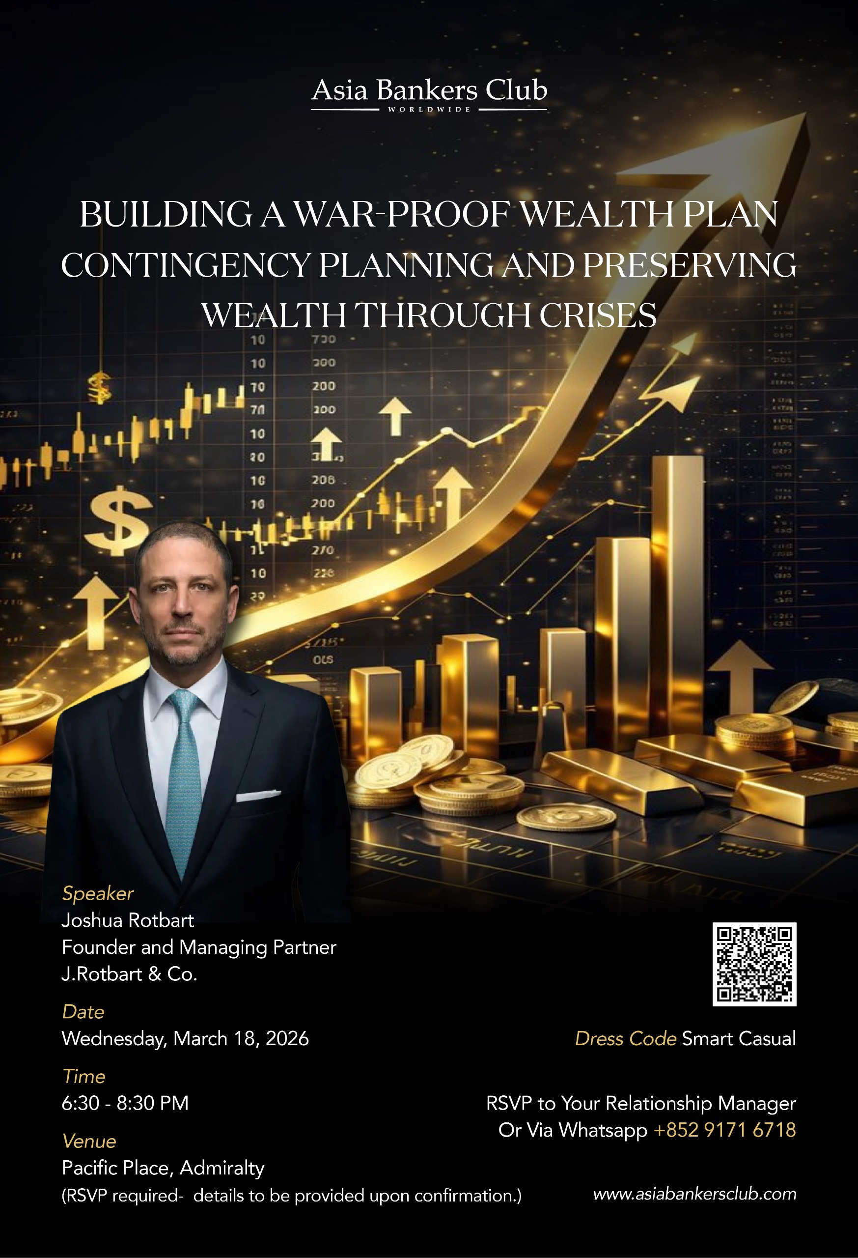 Join us for an exclusive evening with Joshua Rotbart, Founder and Managing Partner of J. Rotbart & Co., a global precious metals firm that provides secure investment and logistics solutions. In this timely session, we will explore: