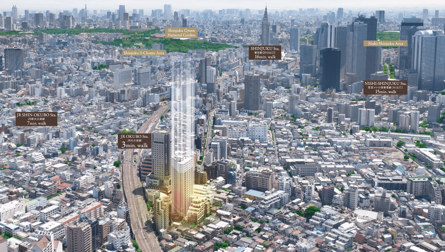 Located in Shinjuku, 3-min walk to Okubo Station. A convenient place surrounded by supermarkets, restaurants, and convenience stores within 5-min walk.